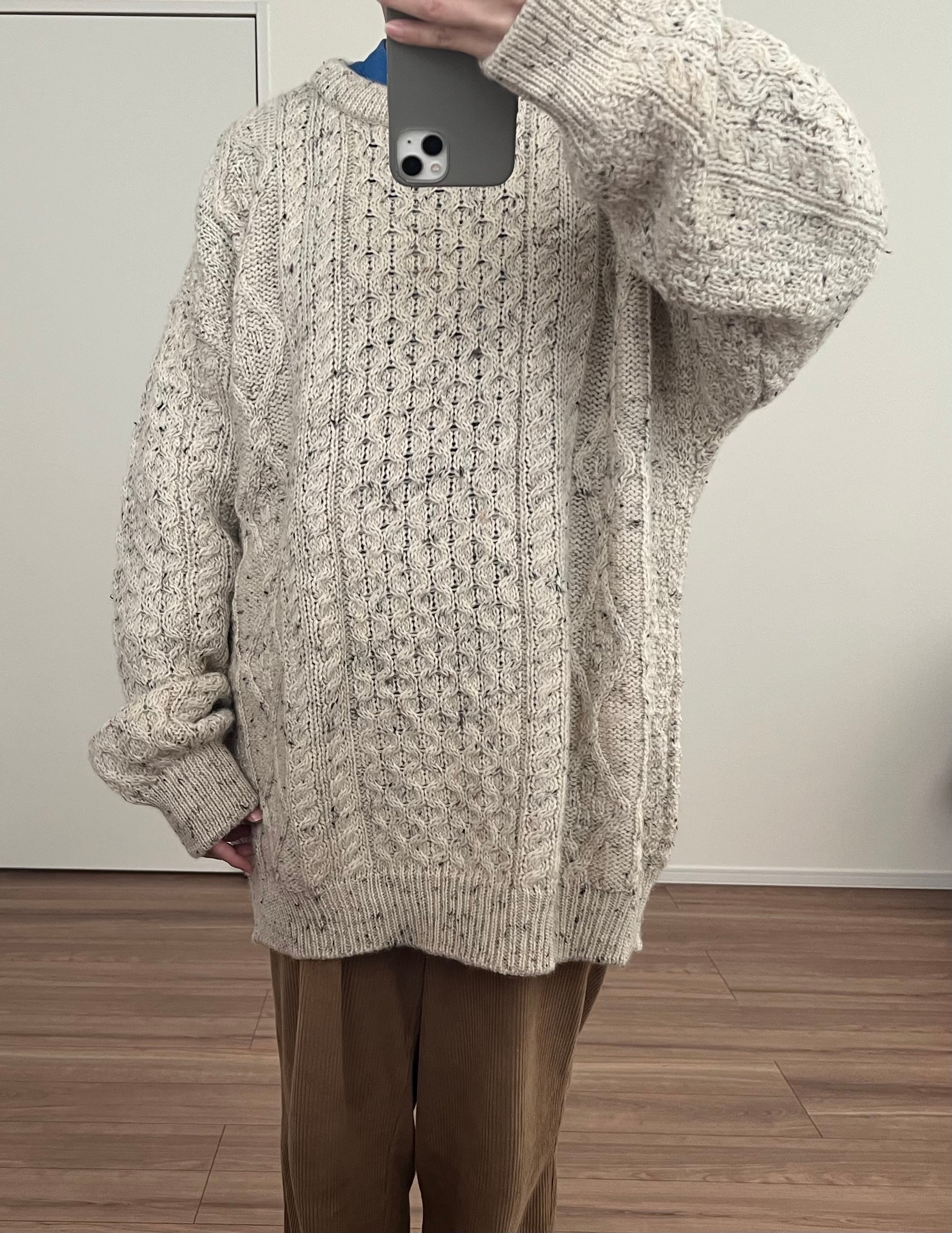 アラン編みのニットプルオーバー