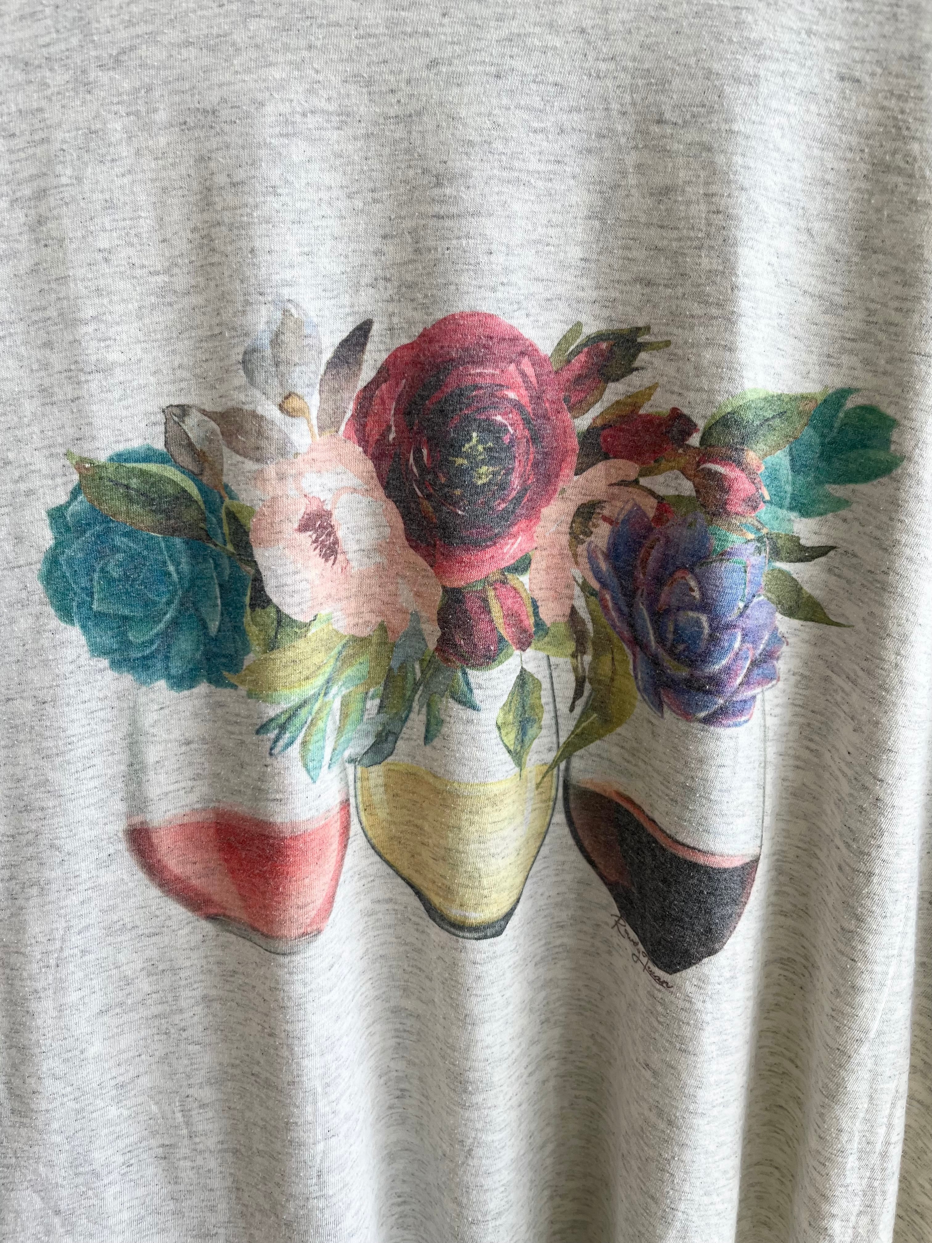 杢グレーに花のプリント
