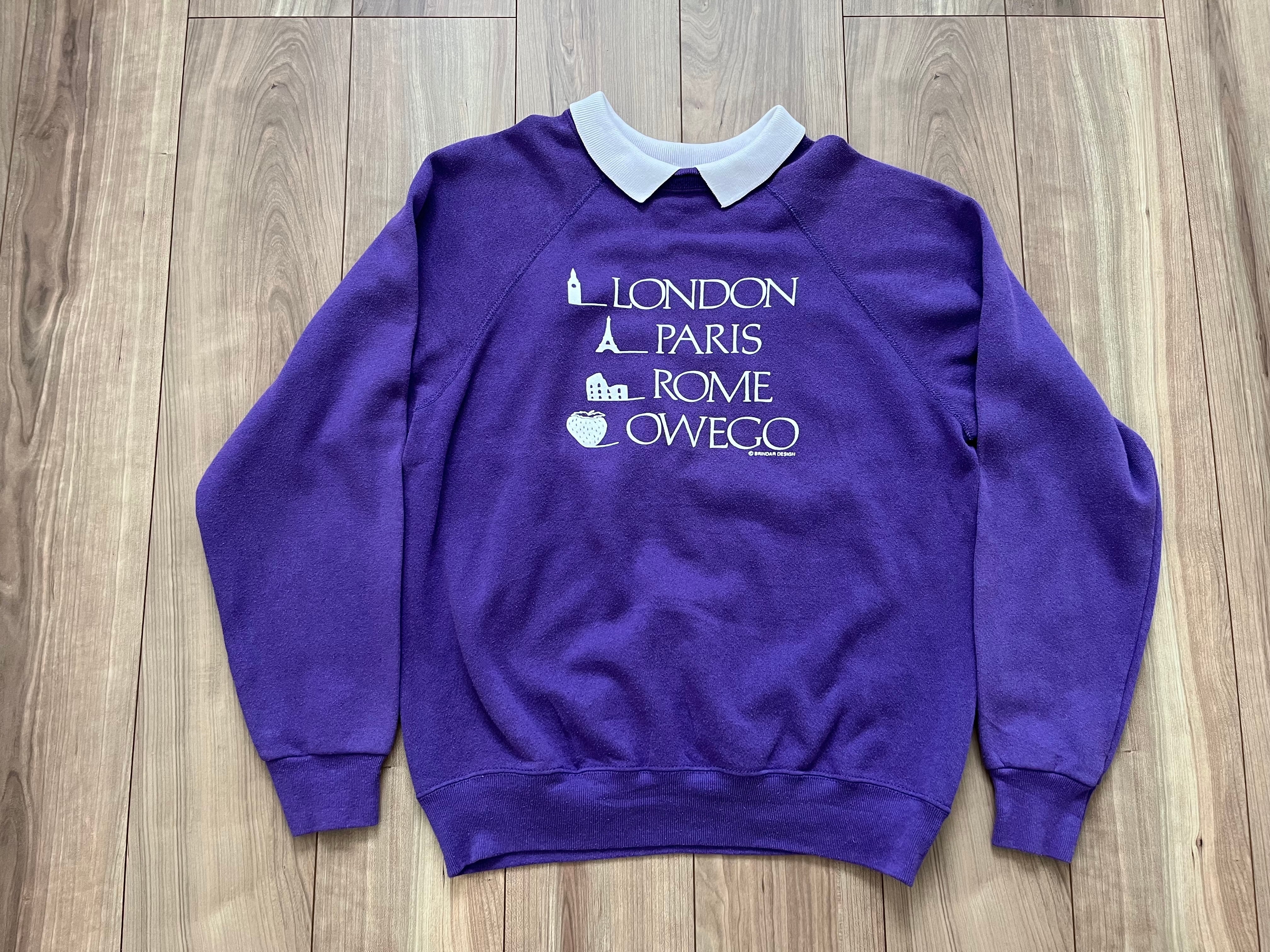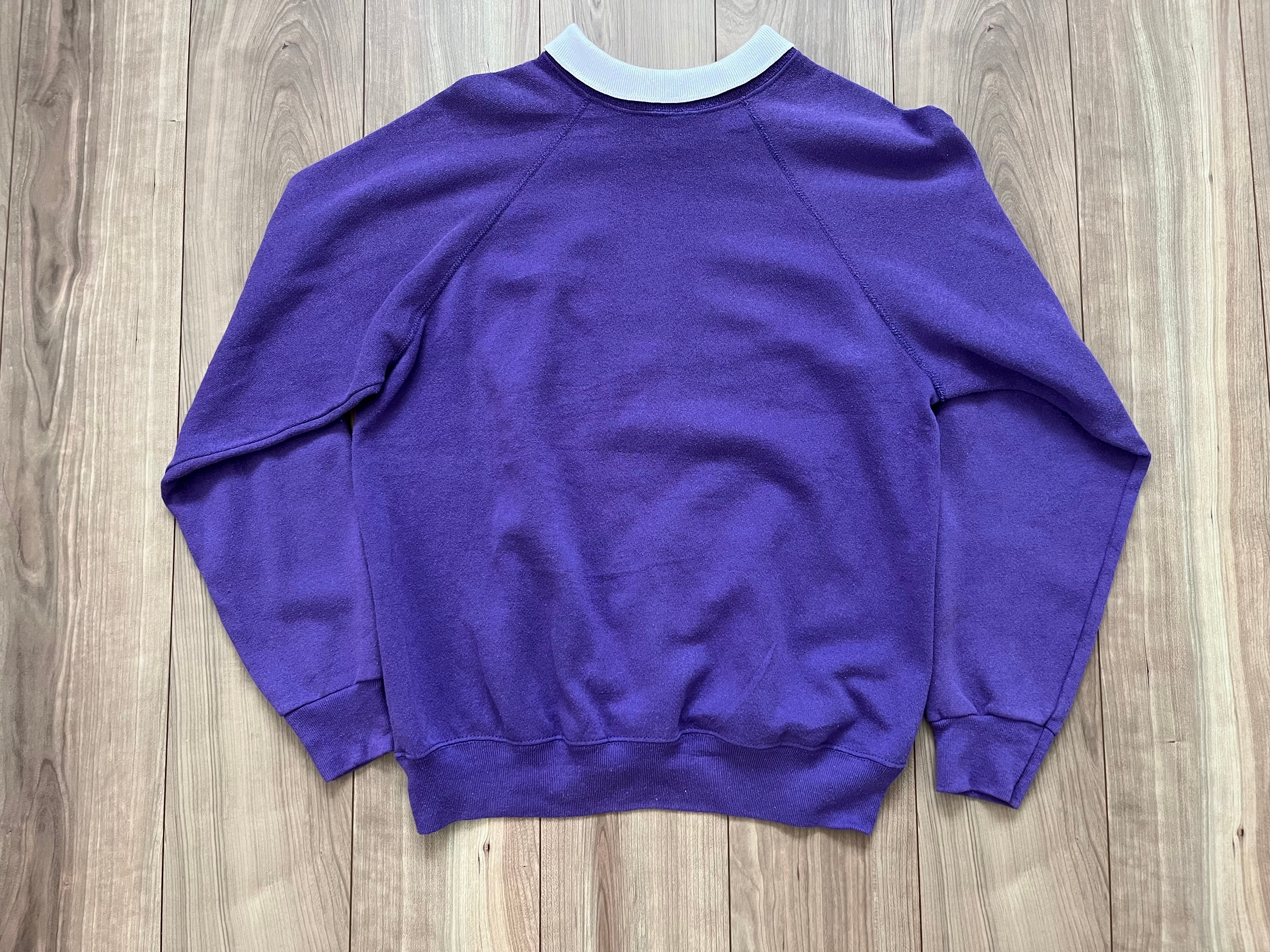 紫色に白い襟がレトロで 上品な印象のスウェットです --- made in USA コットン 50% ポリエステル 50% サイズ表記 M 肩幅 約50cm 身幅 51cm 着丈 61cm 袖丈 約60cm --- 商品は全て一点ものの輸入古着です。 特性上、シミ、色落ち、ダメージ等着用感が大なり小なりございます。 ご理解いただいた上でのお買い求めをお願いいたします。